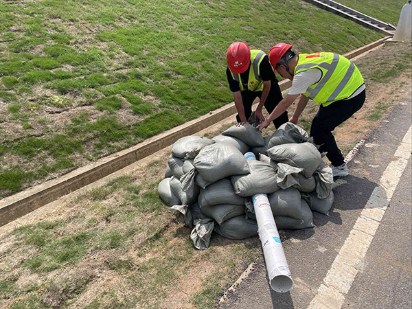 在管涌封堵科目中,救援队利用反滤围井法对大坝坝脚管涌处进行加固封堵,抽排水管快速启动,对积水区域实施强排作业,全过程衔接紧密,各小组协同高效,在预定的时间内完成了抢险任务。