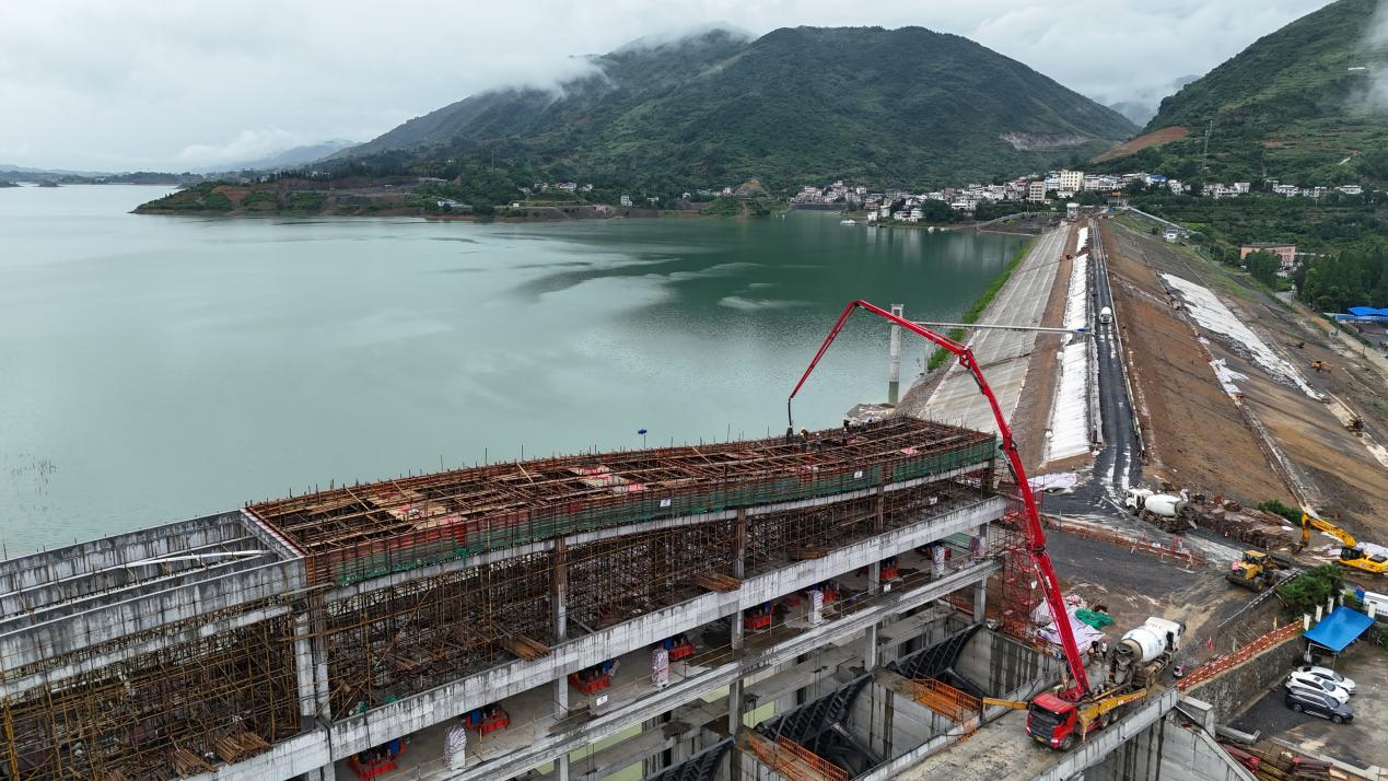 本次除险加固工程旨在全面提升水库枢纽的安全性和运行效能。因溢洪道拆除重建提前至与大坝加固在同一个枯水期施工,施工时段重合造成施工工期紧张、施工强度增大。自开工以来,项目管理团队长期驻扎在施工一线,秉承高速、高效、高质的工作准则,克服汛期施工窗口短、高空作业风险高、地质条件复杂等困难,高质量推进项目整体进度。